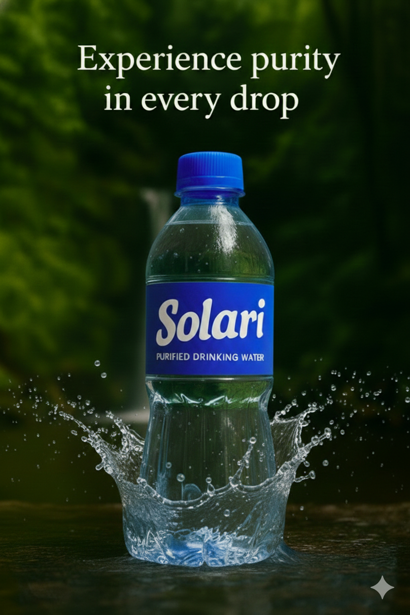 Solari is the premium drinking water brand from Santhanu Aquaceuticals, combining nature's purity with scientific precision. Our name "Solari" represents the life-giving energy of the sun, while "Aquaceuticals" reflects our pharmaceutical-grade approach to water purification.